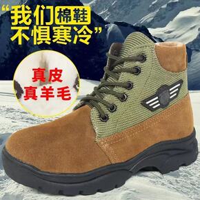 真皮真毛防寒靴大头羊毛雪地靴男劳保棉鞋冬季加绒加厚...