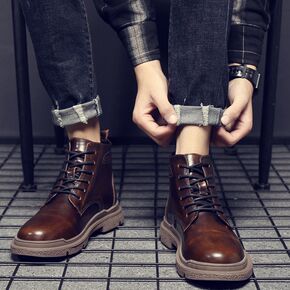 马丁靴男2021冬季英伦风男士中帮中东高帮保暖绒厚...