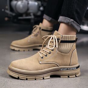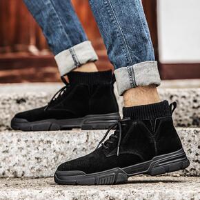 雪地靴男高帮英伦切尔潮流靴子圆头西皮中帮马丁加绒棉...