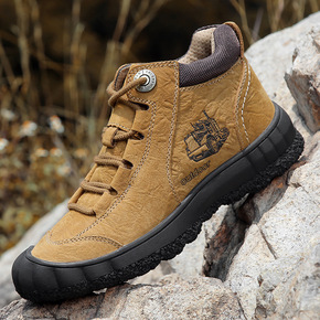 2020冬季头层牛皮男鞋户外休闲高帮登山鞋雪地靴加...