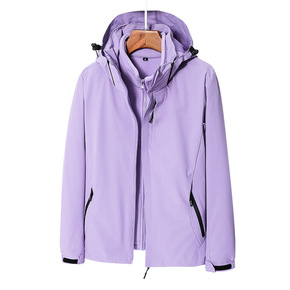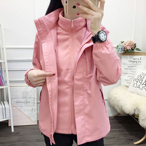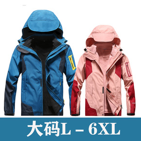 大码外套冲锋衣情侣款可脱卸帽休闲男夹克户外双层防风...