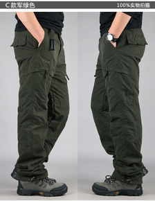 秋冬加厚加棉加绒长裤子男裤纯色工装裤户外防寒男裤休...