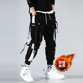 束脚工装裤男秋冬季学生加绒加厚潮牌韩版潮流大码男士...