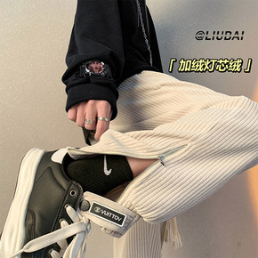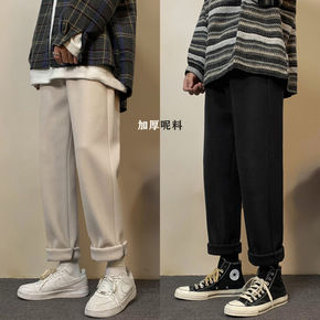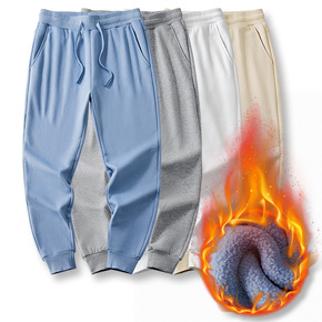 2021冬季新款纯色加绒休闲裤子男宽松大码男装加厚...
