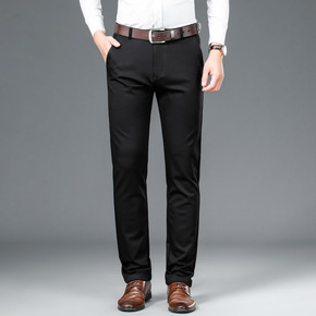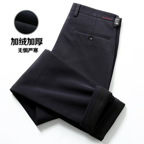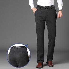 秋冬季休闲裤男厚款韩版弹力免烫男裤黑色直筒商务修身...