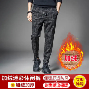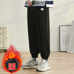 2021冬季加绒加厚大码男士卫裤青少年韩版运动休闲...