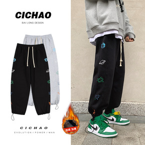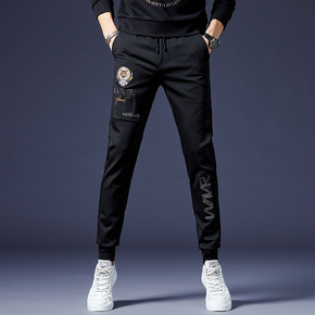 2021冬季休闲长裤男潮流个性刺绣束脚裤子春秋新款...