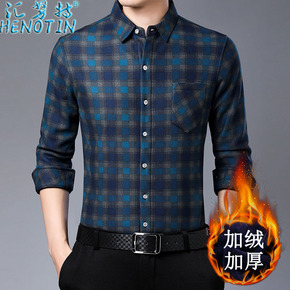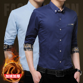 帝创者5601男士加绒保暖衬衫青年韩版修身衬衫加厚...
