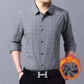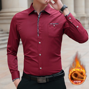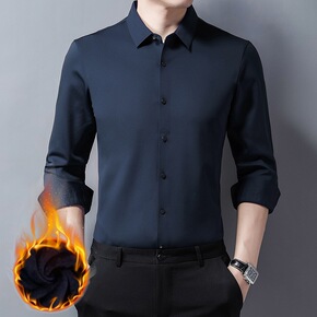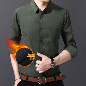 秋冬季加绒保暖长袖衬衫男士商务正装韩版潮流宽松加厚...