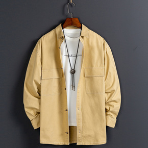 新款韩版灯芯绒纯色男士宽松休闲潮流百搭长袖衬衫外套...