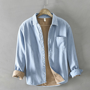 517秋冬新款男士牛仔加绒衬衫一件代发...