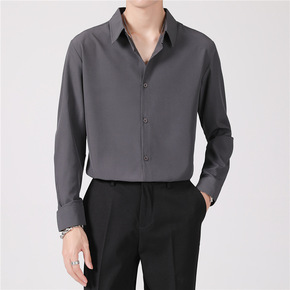 2022新品春季免烫轻奢纯色男士衬衫长袖商务休闲正...