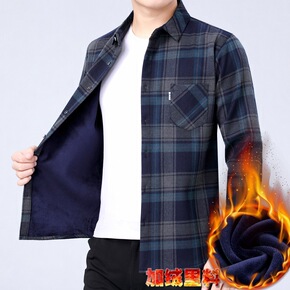 2021新款工装保暖衬衫加绒加厚商务休闲宽松格子衬...