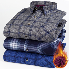 纯棉磨毛保暖衬衫冬季男士加绒加厚全棉格子衬衫防寒抗...