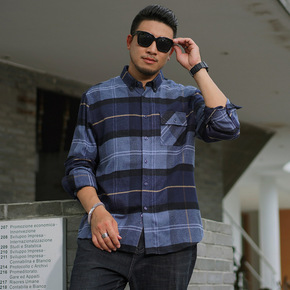 大码男装长袖衬衫男士秋冬厚款磨毛肥佬宽松休闲衬衣胖...