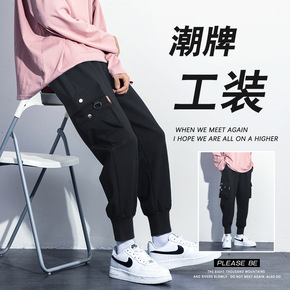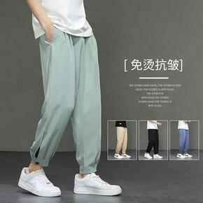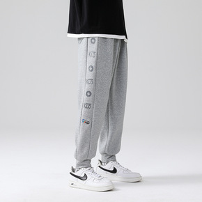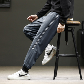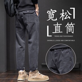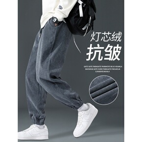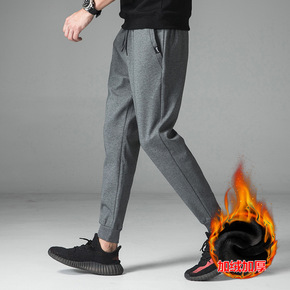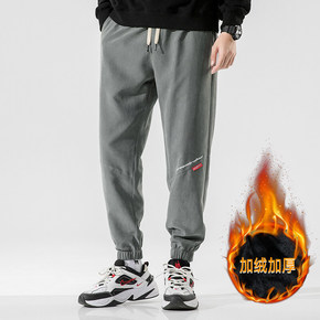 2021秋冬款休闲裤男韩版潮流加绒束脚九分裤宽松休...