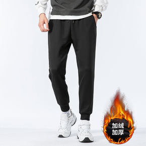 冬季加绒休闲长裤男士2021新款运动裤青年保暖男裤...