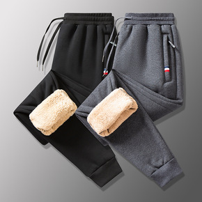 男士冬季羊羔绒加厚休闲运动长裤子男士加绒保暖卫裤宽...