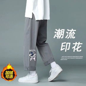 男士休闲冬季加绒裤韩版时尚印花束脚九分裤百搭宽松锥...