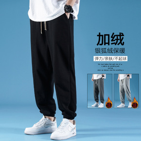 纯棉水貂绒秋冬季加绒休闲运动长裤男士宽松港风潮流小...