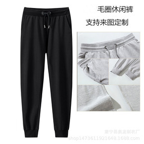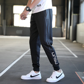 三杠黑色运动休闲卫裤定 制印字logo学生韩版运动...
