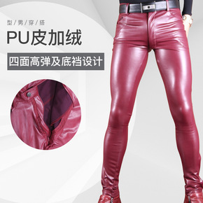 欧美跨境男士PU皮裤NK31机车加绒紧身小直脚牛仔...