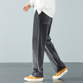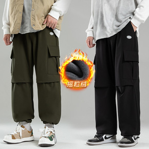 2021冬季新款加绒裤男 350g摇粒绒复古纯色运...