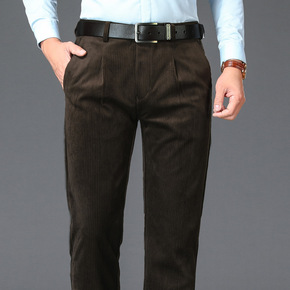 中老年灯芯绒商务男裤秋款高腰小直筒中青年休闲爸爸工...