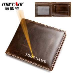 新款男士商务油蜡皮复古头层牛皮钱包外贸爆款多卡位手...