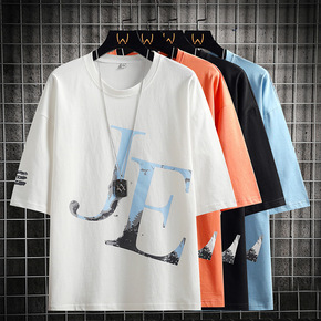 夏季新款青年男式圆领短袖T恤学生休闲港风文艺袖宽松...