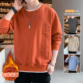 圆领长袖t恤春秋男装加绒加厚男士卫衣宽松打底衫体恤...