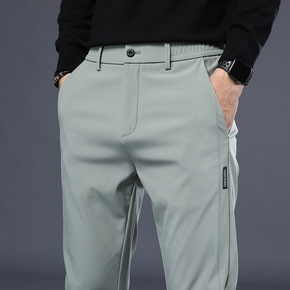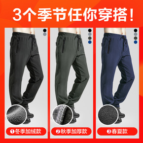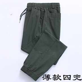 秋季松紧腰棉麻男士休闲裤子男韩版潮流修身直筒男裤厚...
