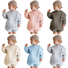 童装批发2022新品儿童套装长袖卫衣运动裤纯色男女...