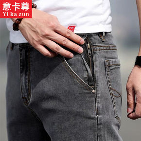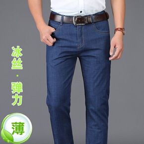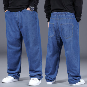 夏季松紧腰牛仔裤男宽松直筒加肥码胖子肥佬运动弹力长...