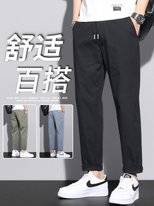 九分裤男夏季休闲裤宽松9分裤男士韩版小脚裤潮流哈伦...