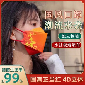 2022新年红kn95一次性口罩3d立体防尘儿童n...