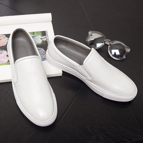 男士真皮小白乐福鞋韩版百搭休闲板鞋潮流透气一脚蹬男...