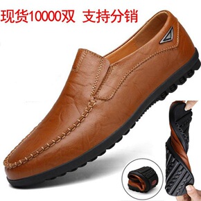 实拍图:豆豆鞋男牛皮休闲皮鞋韩版男鞋透气软底脚蹬懒...