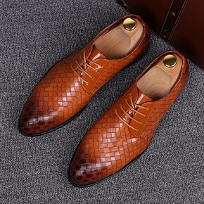 鞋子男2021年新款皮鞋男韩版潮英伦男鞋夏季格子鞋...