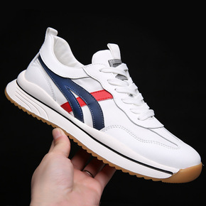 春夏新款男鞋潮鞋子真皮运动休闲小白鞋男透气阿甘时尚...