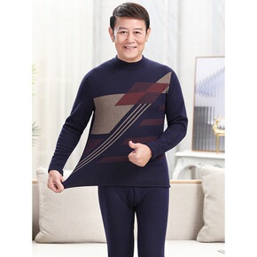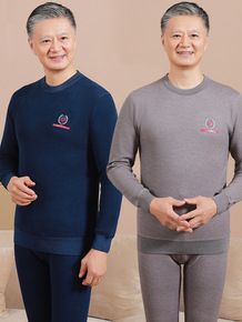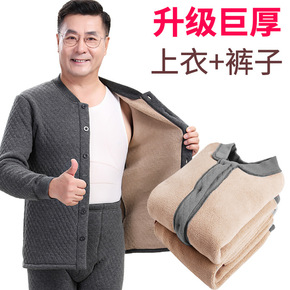 中老年保暖内衣男加绒加厚套装老人男士上衣爸爸纯棉秋...