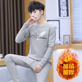 冬季男士保暖内衣加绒加厚青年时尚秋衣秋裤套装可外穿...