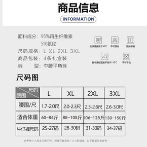 适用男士内裤男平角裤再生纤维纯棉青年四角大码运动短...