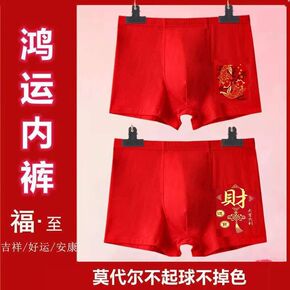 本命年内裤男士平角裤纯棉大红色四角裤头男结婚礼物属...