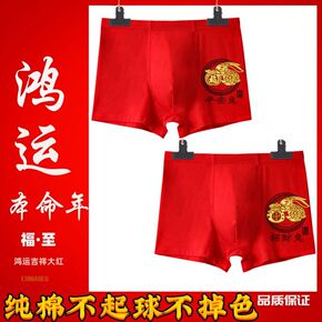 新款兔年含棉本命年男士内裤平角裤子透气潮流个性喜庆...