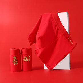礼盒装男士红内裤男生本命年属兔生肖大红色平角四角裤...