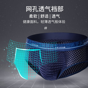 男士冰丝三角裤夏季新款网孔透气中腰大码青年速干三角...