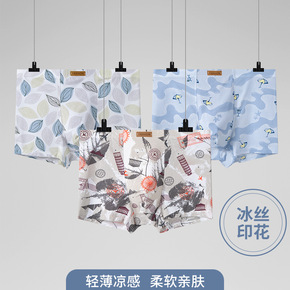 莫代尔男士内裤男冰丝无痕印花男四角内裤薄款透气短裤...