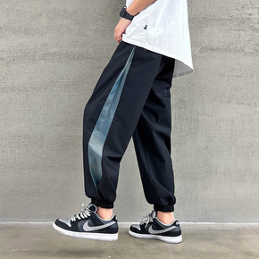 工装裤男束脚ins国潮拼色休闲裤时尚九分裤宽松嘻哈...