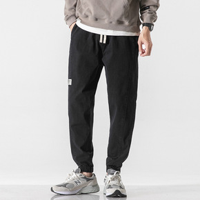 L8218秋冬季纯色灯芯绒休闲裤男式复古多口袋九分...